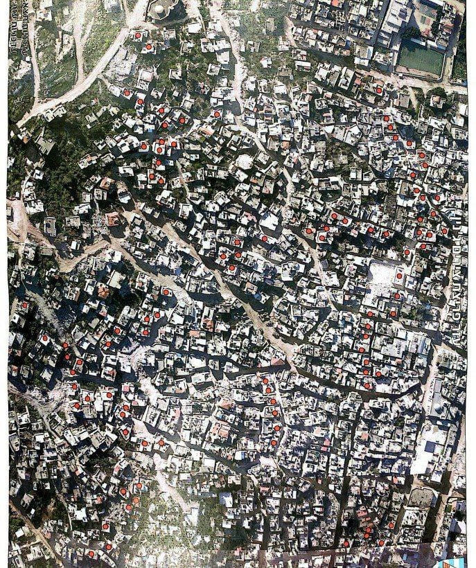 Houses slated for demolition in the Jenin refugee camp. Credit: Israel Defense Forces This map was distributed to the residents.