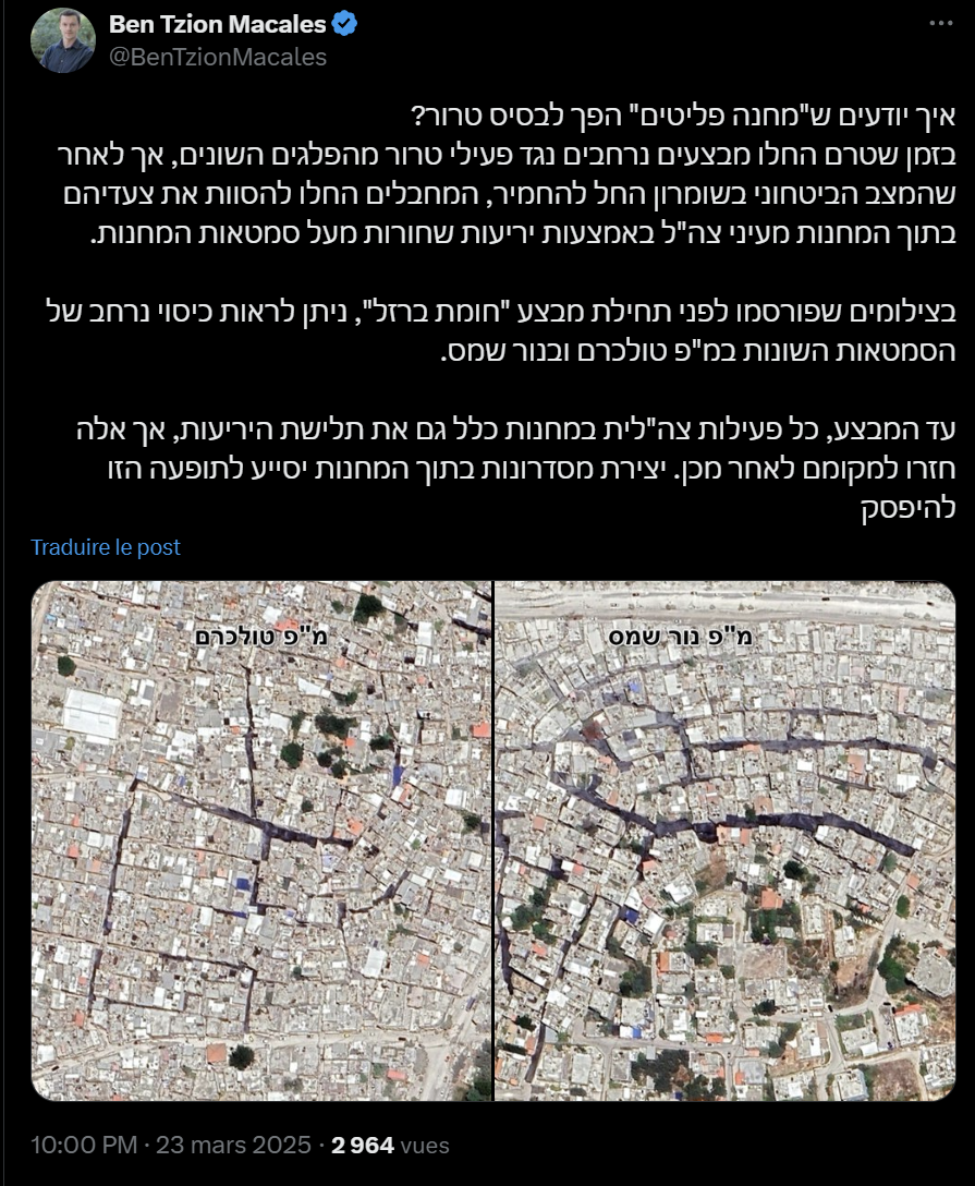 At the end of March, another reason evoked to demolished the camp and create wide corridor inside it comes from the X account of @BenTzionMacales :