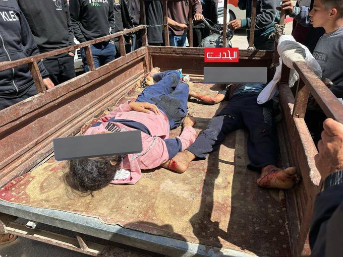 An early afternoon Israeli strike killed two children while they were fetching water in the town of Khuza'a, eastern Khan Younis.