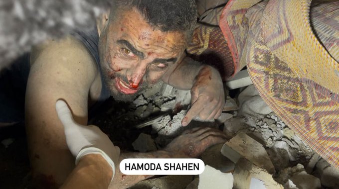 The journalist survived with injuries, but lost 9 memebrs of his family including his wife and children (one still an infant).