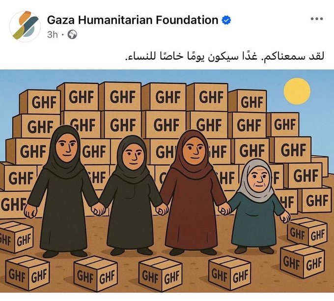 The GHF announced on social media dedicating aid distribution on July 24 to women.