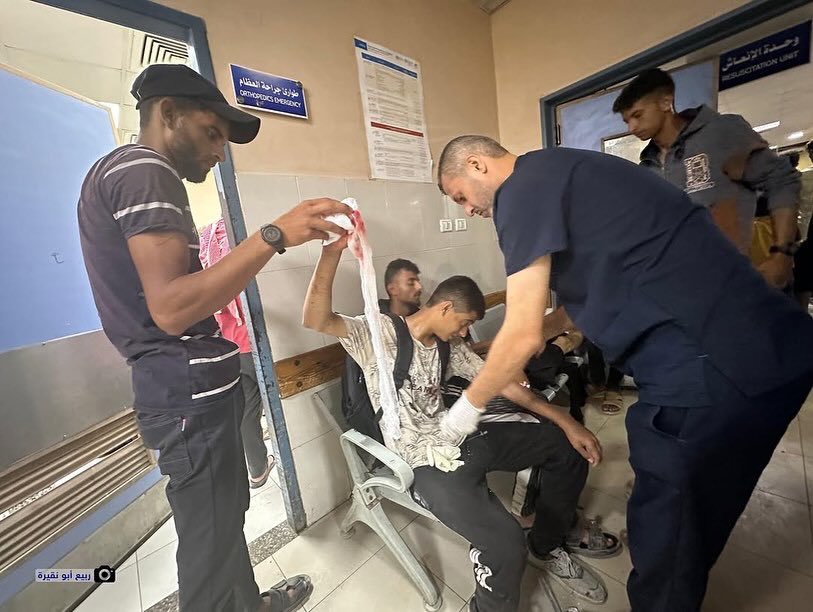 Dr. Izzeddin Shaheen who works in central Gaza reported that Al-Awda hospital received over 60 injuries from the aid site, refering to the one in Netzarim. As of 4 am, all the aid at Netzarim had already been taken, leaving most aid seekers empty-handed.