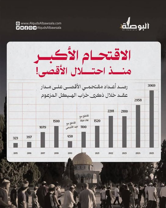 This incursion was the largest since Israel occupied the site: 3,969 jews desecrated the mosque, with 1,250 reported in Ben-Gvir's group. It was also the longest lasting at 6 hours and 15 minutes depriving muslims from their worship site.