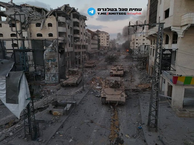 Israeli media released footage showing Israeli tanks reached Al Jalaa round about and entered Al Jalaa St. coming from Al Saftwai Street to the north. Thus the ground invasion reached the Sheikh Radwan quarter.