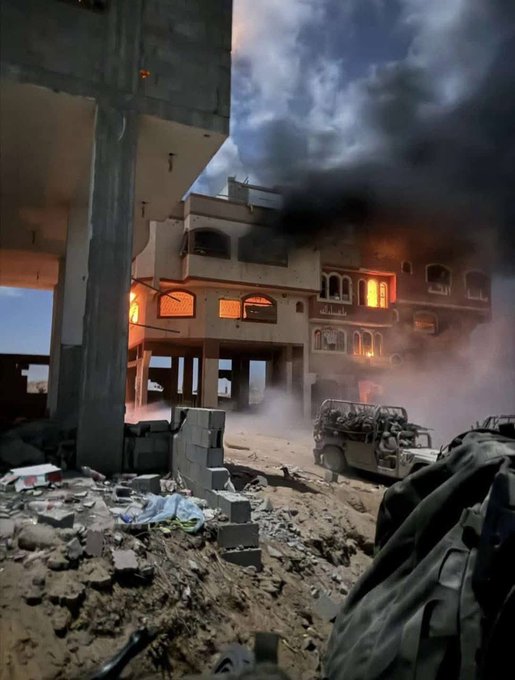 Prior to its withdrawal from Gaza City, IDF troops torched homes and before withdrawing from Gaza City as part of the ceasefire agreement.