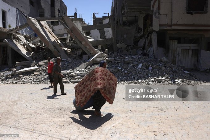 In the evening, Israel perpetrated strikes on displaced people in at least three locations in western Gaza City notably with an airstrike on dispalcement tents at the Palestine Stadium.