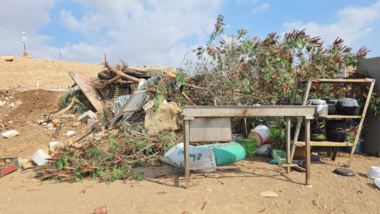 On Augustus 21, at 7 a.m., soldiers and a representative of the Civil Administration arrived in Ein al-Hilweh, in the northern Jordan Valley, and used a bulldozer to demolish the entire compound — houses and a barn — belonging to the Kadri Darajma family, as well as the barn of the Fathi Darajma family, who have lived there for about 60 years. The soldiers refused to accept or even look at the demolition delay orders issued by the court, valid until 3 September 2025.
