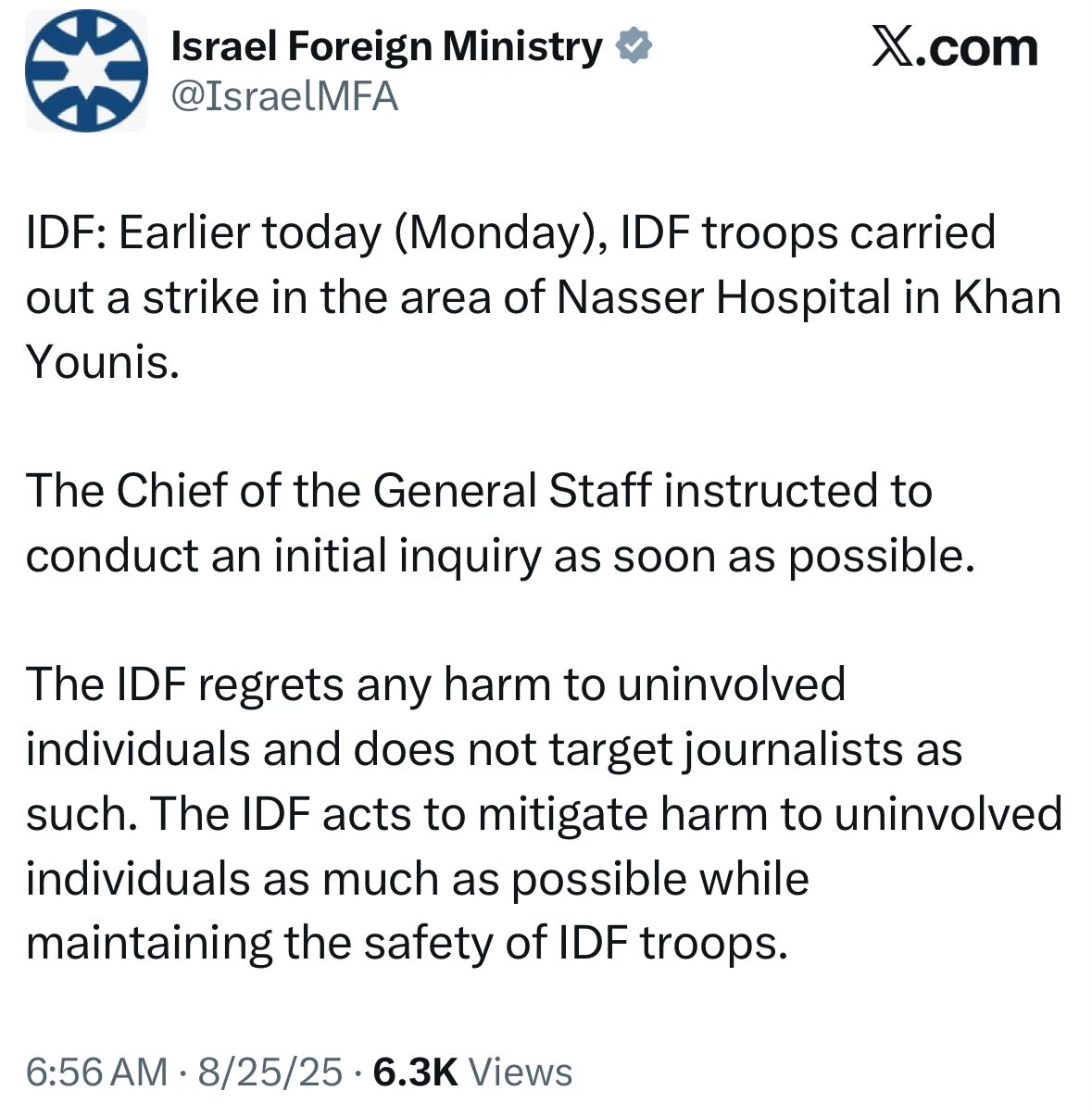 Israeli spin: Israeli media sources reported that there was a camera on the hospital roof that Hamas used to film IDF troops. After initially deciding to carry out a drone airstrike, the IDF's artillery shelled the hospital twice.