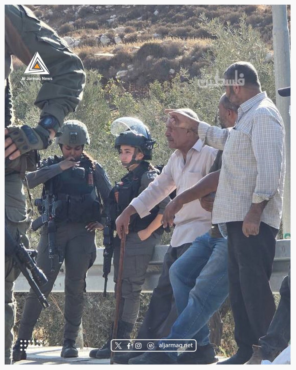 Israeli soldiers backed Israeli settlers in raiding the lands of Kobar village, north of Ramallah. They assaulte farmers during olive harvesting, arrested several residents, and seized their vehicles