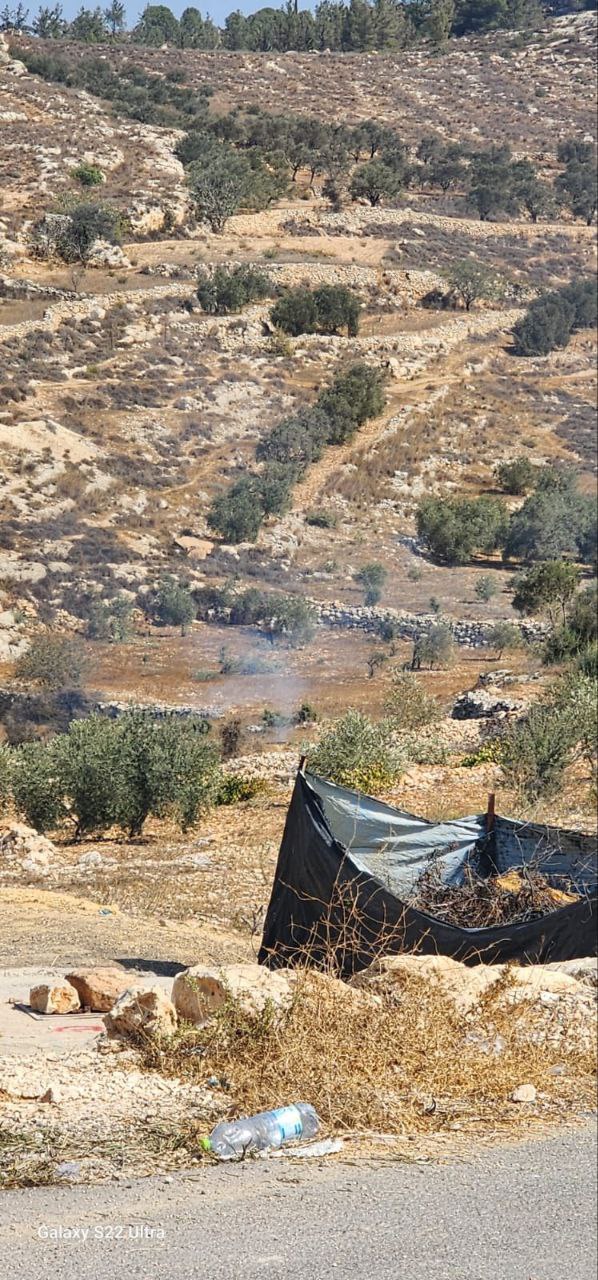 At the same time, in Aqraba, settlers targeted farmers looking after their olive fields and forced them off their lands, second time since last week; Settlers targeted also farmers looking after their olive fields and forced them off their land.