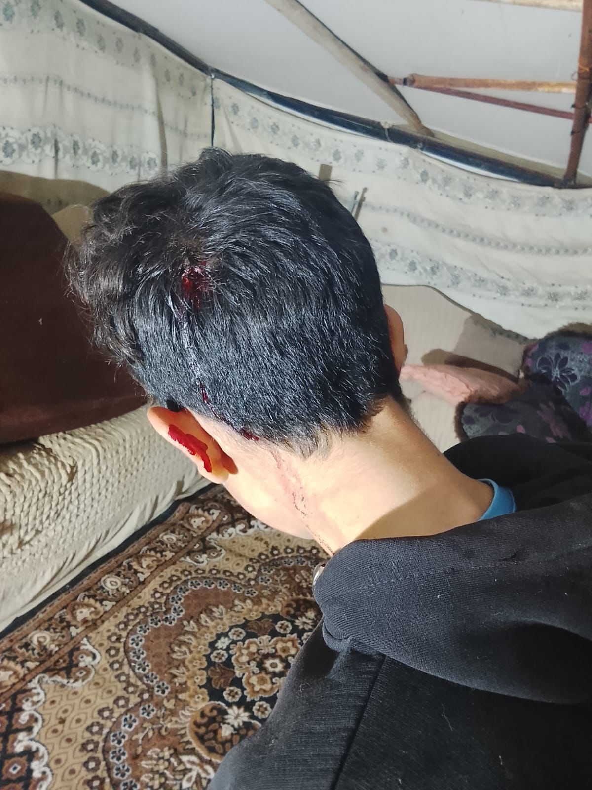 Settlers stormed the home and farm of the Abu Hammam Rizq Abu Naim family in a white pickup, brutally beating the child Rizq Hammam on the head, assaulting his mother, breaking one foreign activist’s arm, attacking solidarity volunteers with sticks, and stealing activists’ phones. The attack unfolded under the protection of the Israeli occupation forces, who sealed off village entrances, allowed settlers to freely carry out the attack, and blocked Palestinian ambulances from reaching the wounded.