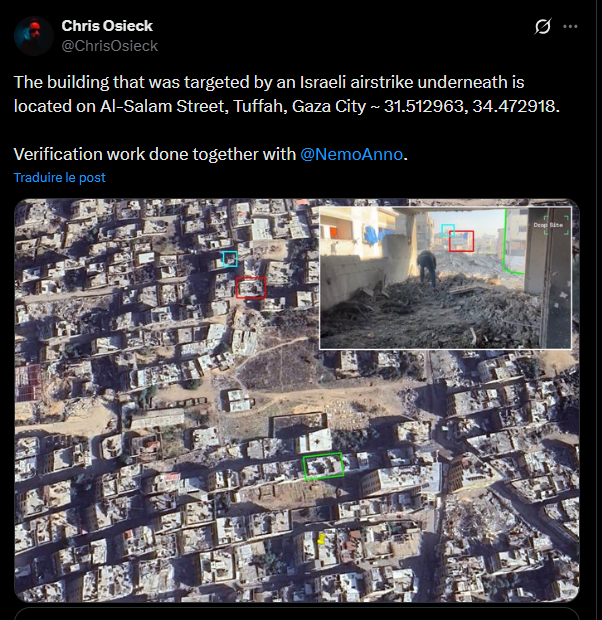 According to Drop Site News and Trevor Ball, Video from Drop Site News shows remnants of at least 3 US made GBU-39 bombs (3 different tail sections) at a residential building in Al-Tuffah, Gaza City, where two people were killed and five were wounded. One of the bombs failed to explode.