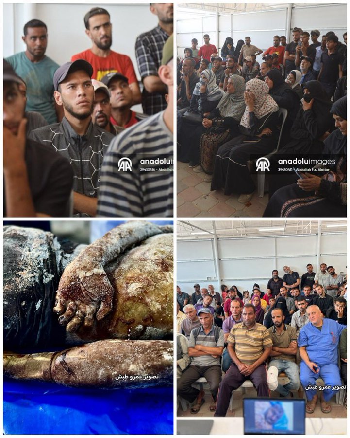 “We have received 315 bodies so far, and only 89 of them have been identified through clothing or a wedding ring or simple markings. Yesterday, we received a new body that had been mauled by trained predatory dogs, and the marks of the attack were clearly visible. Some bodies arrived without heads, some were crushed under military bulldozers, and some were found with their hands tied and eyes blindfolded, with close-range gunshot wounds to the head and chest. There is also clear evidence of organ theft through precise surgical incisions, with the heart, liver, kidneys, and corneas removed. We buried 182 bodies in a mass grave after taking samples as much as our limited resources allowed. We requested cooling facilities from the Red Cross, and they brought us refrigerators used for fish, which we were forced to use temporarily to preserve the dignity of the bodies and allow families time to identify them. International investigation committees must be activated to hold the occupation accountable, identify the unknown, and document these crimes in a legally recognized manner.” source