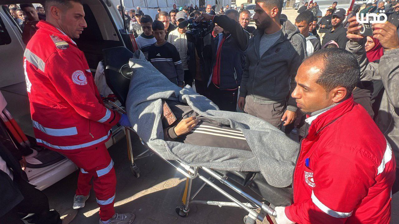 Palestinian freed prisoner Mohammed Al-Basyouni is in critical condition at Al-Aqsa Hospital in Deir al-Balah central Gaza Strip after falling from the fourth floor with his family when their tent, pitched on a rooftop, was blown off by strong winds.