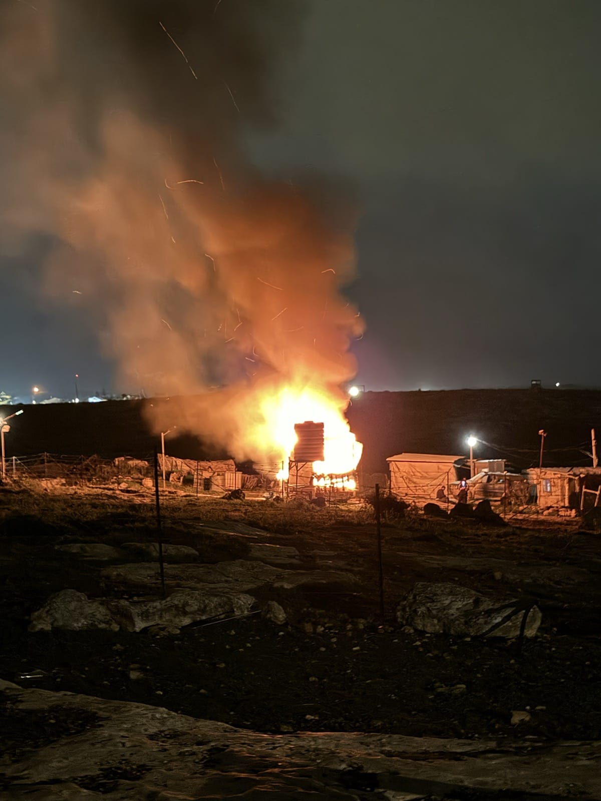 On February 24, 2026, during the night, dozens of Israeli settlers entered the Palestinian hamlet of Susiya in the southern West Bank, in Masafer Yatta, South Hebron Hills carried out a pogrom. The attack happened around 8 p.m. on Tuesday, according to timestamps from two security cameras in the village of Susiya in the southern West Bank. They attacked homes and cars with stones, and set fire to three tents, a pre-fab, chicken coops and cars at several spots throughout the village.