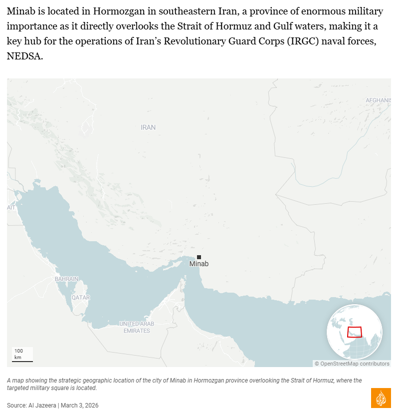 On March 1, The Guardian reports that the Israeli-Us "strike on girls’ elementary school in south of Iran has killed 148 people and injured 95 others, according to Iran state media"