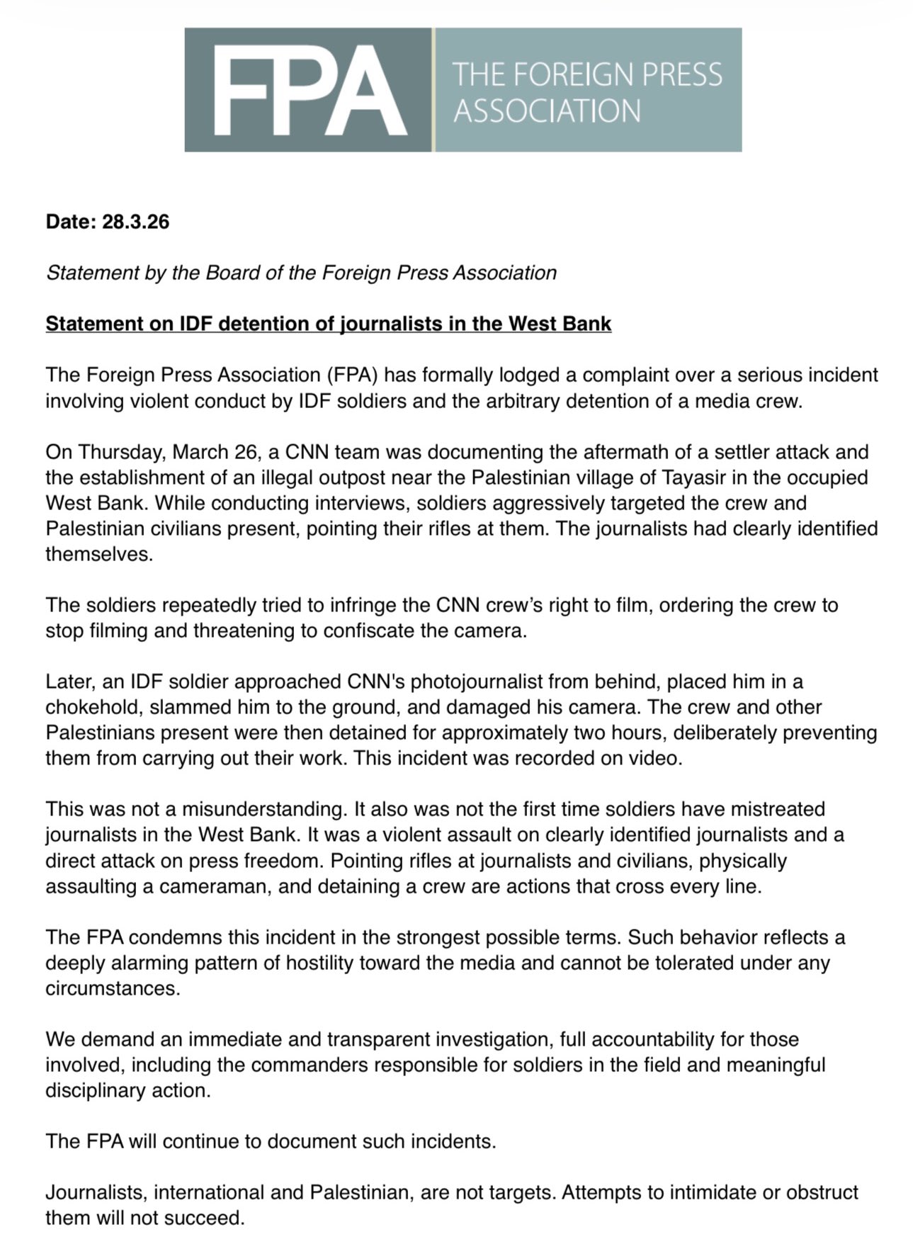 According to an X's statement of Jeremy Diamond, on March 30, "The Israeli military’s top general suspended all operational activities of the reserve battalion involved in my team's detention & assault. The reserve battalion, comprised of hundreds of reservists who served in the ultra-Orthodox Netzah Yehuda battalion, will be immediately withdrawn from the West Bank and reassigned to training until further notice. The sweeping disciplinary action comes about 48 hours after our report first aired."