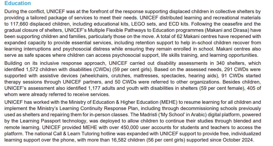 Repeated Israeli airstrikes in Lebanon (2025-2026) have damaged or destroyed civilian infrastructure including schools used as shelters where displaced over 1 million people, including hundreds of thousands of children. The education system was heavily disrupted: the schools were closed or used as shelters and the children unable to attend classes regularly.